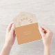 Este diseño de invitación a la boda presenta tipografía arcaica en un original tipo de letra inspirado en la cosecha. El tipo de letra tiene un toque divertido y retro, añadiendo un toque único a la invitación. La paleta de colores del diseño es de color amarillo dorado y marfil, creando un ambiente cálido y alegre. La combinación de la tipografía abovedada y el tipo de letra vintage le da a la invitación un aspecto elegante y único. En general, este diseño de invitación a la boda es perfecto para las parejas que quieran darle un toque de personalidad y creatividad a su gran día.