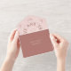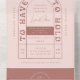 Este diseño de invitación a la boda presenta tipografía arcaica en un original tipo de letra inspirado en la cosecha. El tipo de letra tiene un toque divertido y retro, añadiendo un toque único a la invitación. La paleta de colores del diseño es rojiza y rosa claro, creando un ambiente cálido y romántico. La combinación de la tipografía abovedada y el tipo de letra vintage le confiere a la invitación un aspecto elegante y único, mientras que la paleta de colores rojizo y rosa claro le da un toque de moda. En general, este diseño de invitación a la boda es perfecto para las parejas que quieran darle un toque de personalidad y creatividad a su gran día.