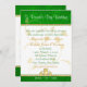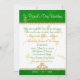amistad ~ amor ~ lealtad se expresan en el símbolo Claddaugh en esta invitación a la boda del Día de San Patricio. Al revés está la Canción Boda irlandesa que podría eliminarse por elección propia de texto. En los colores tradicionales verde, dorado y blanco, esta invitación marcará el tono de su boda irlandés.
