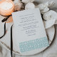 Combinando la brizna veraniega del Mediterráneo con la elegancia clásica de azul marino y blanco, nuestra invitación a la boda Santorini presenta un patrón mediterráneo de baldosas en el fondo de aguas turquesas costeras y blanco, con sus detalles de boda en bloques azul marino y letras de guión. ¿Necesita ayuda con la redacción de la invitación a la boda o la personalización? Contáctame a través del enlace "Preguntar a este diseñador" en esta página.