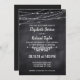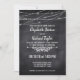 Tablero rústico de tiza y luces de cuerda para invitaciones de boda para estilos de boda campestres- Vintage estilo pizarra de fondo. A lo largo de la parte superior hay cadenas de luces románticas de cuerdas. Personalizado con nombres de pareja en letras coordinadas, gris pálido y de estilo escrito a mano que se parecen a tiza. Un elegante borde de desplazamiento separa la introducción y los nombres de los detalles del boda. La parte posterior tiene un fondo de color negro sólido y de pizarra, que puede cambiarse a cualquier color. Nota: Todas las imágenes están impresas. No es una pizarra. Utilice el botón Ti Personalizar para cambiar cualquier cosa: estilos de fuente, tamaños, colores o ubicación. Elegante país rústico que invita a complementar los temas de bodas vintage, estilos de boda en pizarra, bodas rústicos, bodas rurales, modernos colores bodas en blanco y negro, bodas de verano, bodas informales al aire libre o bodas de granero. En nuestra tienda Zazzle.com/angela65* disponemos de materiales y decoración de bodas blancos y negros coordinados y rústicos.