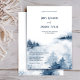 Captura la esencia de tu historia de amor con esta invitación a la boda de la selva color azul marino. El nebuloso diseño de los bosques crea un entorno mágico y sereno, perfecto para bodas rústicos o de inspiración natural. Con textos en personalizable e impresiones de alta calidad, esta invitación refleja perfectamente su tema boda único y deja una impresión duradera a sus huéspedes.