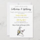 Invitación a la boda con temas de conejo alegres y coloridos. Diseño caprichoso en amarillo, rosa y verde.