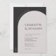 Celebra este día especial con esta moderna y minimalista tarjeta de invitación a la boda! Esta tarjeta presenta fuentes elegantes y un sencillo monograma personalizable sobre un fondo de arco gris negro y fresco. Personaliza con tus propios detalles. Perfecto para una celebración boda moderna y elegante.
