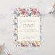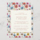 Con un vibrante borde de acuarela de flores silvestres de estilo manual en tonos azules, corales, amarillos y rosa rubor. El diseño rodea un nítido centro crema donde se muestran detalles de eventos en fuentes serif modernas. El diseño depurado y el animado motivo floral mezclan la sofisticación contemporánea con el encanto romántico, lo que hace que esta invitación sea ideal para celebraciones de primavera, verano, jardín o temática bohemia. La espalda está limpia para más detalles o una nota personal, lo que garantiza que tu invitación se sienta a la vez alegre y atemporal.