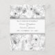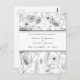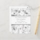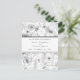 Postal de invitación a la boda sencilla y elegante con arte moderno de línea. Dibujo a mano de motivos florales en blanco y negro de margaritas, rosas y helechos.