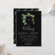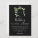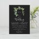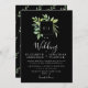 Color de agua negro Vegetación Invitación a la boda Wreath que agrega tus iniciales en la corona de la hoja - un diseño de invitación a la boda de la hoja de color de agua pintada. Felices colores primaverales para una boda de verano o primavera con vegetación/hojas tipo helecho.