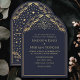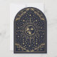 Fijar el tono para una unión mística con estas invitaciones de boda de inspiración tarot, que muestran un impresionante diseño de sol, luna y estrellas en un elegante marco de arco, con acentos marinos y dorados. Perfecto para celebraciones inolvidables y festivas. El oro que aparece en este diseño NO es un Relieve metalizado real y se imprime plano. Artículos coincidentes en nuestra tienda para un tema fiesta completo.