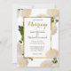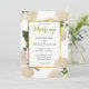 Esta romántica invitación a la boda presenta un patrón de crisantemos pintados y un falso borde de acento de Relieve metalizado dorado.