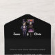 Invitación a la boda única con un par de esqueletos elegantes. Incluye una tarjeta postal de invitación y RSVP para que sus huéspedes puedan cortarla y enviarla de vuelta.