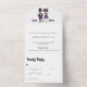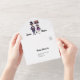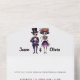 Invitación a la boda única con un par de esqueletos elegantes. Incluye una tarjeta postal de invitación y RSVP para que sus huéspedes puedan cortarla y enviarla de vuelta.
