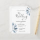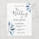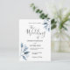 Una simple invitación de boda a la moda en blanco, azul plateado y azul clásico. Un fondo blanco de moda en la parte delantera. Decorado con ramas y follaje de color azul plateado botánico. Guión moderno de gran tamaño con letra, tipografía con el texto: El boda de. Plantillas para nombres y detalles del boda. Texto gris oscuro. Fondo blanco. Sugerencia: Si no desea que se vea como una postal, haga clic en personalizar, vaya a la parte posterior y quite el separador y el sello postal.
