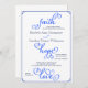 Adaptada de 1 Corinthians 13, esta elegante invitación a la boda de los Winter Blues con escritura Fe, Esperanza y Amor es una elección ideal para el moderno boda cristiano formal. Vea el conjunto completo de opciones de invitación religiosa y accesorios en la tienda Zazzle, Felix Matrimonium.