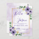 Elegante Bonito Púrpura Floral Dorada Boda Invitación Postal . El diseño tiene un hermoso fondo floral color morado blanco y un marco dorado con detalles bodas escritos tipo bonito letra . Envíe esta elegante moda de moda floral Invitación a la boda a la familia y amigos. Estas hermosas invitaciones pueden ser totalmente personalizadas cambiando los nombres de Novia y Groom , Fecha boda y detalles Bodas . Para cualquier personalización adicional, no dude en ponerse en contacto conmigo en mypaperlove2021@gmail.com
