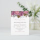 Invitación a la boda de color rosa rosa y púrpura. Un bonito diseño floral de flores y follaje.