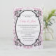Mostrada en un shimmer Pearl muy popular, esta invitación tiene un patrón de coronación rosada Pastel impreso en el fondo en la parte delantera y en la parte posterior. Un Oval negro con lujosas viñas enmarcan el texto dentro. Los nombres de Bride y Groom se resaltan en un rosa suave. Cuerpo de texto mostrado en negro. Elige tu elección de papel y personalizar de sus imágenes si lo deseas.
