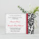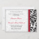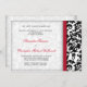 ¡Esta elegante invitación a la boda es lo suficientemente bonita para planear su decoración! Con su mullida damasca en blanco y negro, bordeada por un rojo vibrante, ¡para despegarla perfectamente! Todo el texto es completamente personalizable por usted en la elección de la fuente y los colores de la parte frontal y posterior. En la parte trasera de la invitación se muestra el borde blanco y negro del damasco alrededor de un gran centro rojo con su nuevo monograma casado. ¡O usa el centro como marco y agrega tu foto! Artículos coincidentes disponibles, incluido el franqueo. Si necesitas ayuda, no dudes en contactarme a través del mensaje que recibo en mi tienda o envíame un correo electrónico a DGGallery@yahoo.com