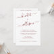 El romántico diseño minimalista presenta una tipografía encantadora y elegante sobre un fondo blanco con un aspecto limpio y sencillo. Guarde el papel incluyendo los detalles en la parte posterior de la invitación a la boda en lugar de en una tarjeta separada. Incluya también la información de RSVP si su invitado responderá electrónicamente (opcional). Todos los aspectos de este diseño se pueden editar (fuente, tamaño de texto o acentos florales movidos/eliminados) para adaptarlos a sus necesidades. Por favor, contáctame si necesitas ayuda con este diseño.