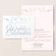 Esta hermosa invitación a la boda se imprime en Relieve metalizado real en la parte delantera y trasera de la tarjeta. El texto interior es rosa y gris sobre un fondo rosa pálido y presenta todos los detalles e información del boda. Una hermosa manera de invitar a sus invitados a su día especial. El texto es totalmente personalizable.