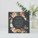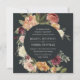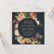 Nuestra invitación a la boda de Moonlight Garden en un formato cuadrado único enmarca tus detalles bodas con un círculo de rosas de acuarela pintados y mamáes en tonos de burdeos, marsala, rosa y melocotón, con follaje verde oscuro y hojas. Una elección elegante para bodas de otoño o invierno, con un fondo negro dramático y colores ricos.