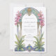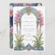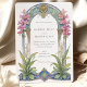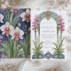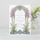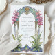 Esta lujosa invitación a la boda capta la esencia del Art Nouveau con su intrincado diseño floral, con un impresionante arco adornado con elegantes orquídeas. En la parte delantera de la invitación descubrirás orquídeas muy bien decoradas en tonos cálidos de melocotón, lavanda y rosa rosa chillón, todo ello con un fondo blanco clásico. La invitación se enmarca en líneas orgánicas y fluidas y en un rico motivo botánico que exuda sofisticación y gracia. El fondo de la invitación sigue la temática floral con un vibrante jardín de orquídeas sobre un fondo azul oscuro y profundo, creando un sorprendente contraste intemporal y moderno. Perfecto para parejas que buscan una invitación refinada y elegante que da fe del amor por la naturaleza y el diseño clásico.