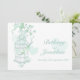 Hermoso esquema de flor simple rosa púrpura y verde menta y pétalos gráficos invitación a la boda. Edita esta invitación con tus palabras. Diseño único de Sarah Trett.
