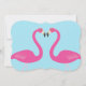 Flamencos rosas divertidos con un acento de fondo azul claro esta invitación a la boda, lo que lo hace perfecto para un evento temático de flamencos de verano, destino, boda tropical o de playa. La parte trasera de esta invitación se ve reforzada con los dos flamencos románticos a punto de besarse. Si necesita ayuda para personalizar esta invitación o necesita elementos de coordinación adicionales, simplemente contáctenos a prettyfancyinvites@gmail.com con su solicitud. En la colección Blue Flamingo Beach Wedding se pueden encontrar elementos de coordinación.