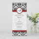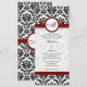 Moda y moda, personalizable completo y invitación personalizada a la boda en un monograma damasco negro y borgoña. Deja que tu estilo brille en estas invitaciones. Coincidir guarda las tarjetas de fecha y los imanes están disponibles en esta tienda.