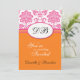 Moda y moda, personalizable completo y invitación a la boda en monograma rosa y naranja personalizada. Deja que tu estilo brille en estas invitaciones. Coincidir guarda las tarjetas de fecha y los imanes están disponibles en esta tienda.
