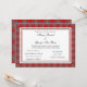 Invitación a una boda de personalizable con temática Boda escocesa utilizando uno de los tartanes para el nombre de la familia MacBean. La información de la invitación a la boda de personalizable se enmarca en el centro de una invitación rectangular estilizada. Esto es perfecto para bodas de destino, bodas del patrimonio familiar o bodas de temática escocesa. Si quieres que otro escote no aparezca aquí, por favor siéntete libre de enviarme un mensaje. Proporcione el número de referencia de STA para el patrón tartán que desee, de ser posible.