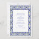 Inspirándose en el arte de la cerámica Talavera mexicana, estas hermosas invitaciones de boda de diseño de azulejos azules y blancos son perfectas para tu boda español o mexicano.