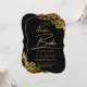 Hermosa invitación a bodas bilingües en negro y oro moderna nuestra boda bilingüe.