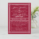 Esta burlona invitación a una boda blanca y roja tiene un ambiente vintage, de estilo antiguo, con el diseño de una carta antigua, que incluye elaborados elementos de escritura, un cartel decorativo, estrellas y una rápída banda de música. La elegante invitación se inspira en el diseño vintage y en posters elegantes. El texto dice: "Te invitan a la recepción nupcial de [nombre del personalizable] y [nombre del personalizable] [fecha del personalizable] [hora del personalizable]. Por favor, Únete a nosotros para una celebración inolvidable". Personaliza aún más la invitación con la información y dirección de la recepción, en la caja con borde punteado.