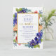 Arreglo floral acuarela de flores azul/violeta profundas complementado con flores rojas con un marco dorado purpurinoso. Guión de oro complementario "y" con corazones para acentuar tu unión. Parte posterior púrpura profundo. Todo tipo es personalizable.