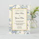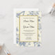 Captura la elegancia intemporal con esta impresionante invitación de boda con un delicado fondo floral azul con un marco dorado, perfecto para resaltar tus detalles especiales. Diseñada para impresionar, esta invitación combina el encanto clásico con la sofisticación moderna, marcando el tono para una celebración inolvidable. Haga de su invitación tan memorable como su día con esta invitación lujosa y bien hecha.