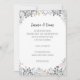Elementos botánicos de color azul pálido, gris y rosa se unen para crear esta invitación a la boda Botánica Floral Azul. Se muestra con esquinas cuadradas y papel mate. El color de fondo azul que aparece en la parte posterior de la invitación de boda se puede cambiar para adaptarse a tus preferencias.