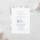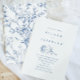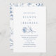 Esta invitación a una boda floral en moda azul y blanco presenta un delicado patrón botánico ilustrado en azul con flores encantadoras y follaje romántico. Esta magnífica invitación a la boda, eterna y romántica, incluye una tipografía clásica y una bonita inspiración de estilo chinoiserie.