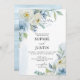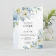 Invitación a la boda floral azul y blanca.