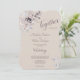 Una acuarela de bonito florida en tonos de ciruela con toques de azul decora la esquina superior izquierda de esta invitación a la boda. La parte frontal muestra el texto de tu boda personalizado en violeta gris oscuro contra un fondo de ciruela pálida. El texto estilizado de la parte superior dice "Juntos". En la parte inferior derecha hay una simple decoración de hojas a juego. La parte posterior de la invitación coincide con el color del texto. Apropiado para bodas de primavera, verano y otoño.