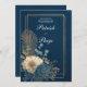 Fije el tono para su celebración con esta invitación a la boda floral con marco de oro de la Marina, con un fondo marino profundo, elegante borde dorado y un bello arreglo floral en suaves tonos marfil, azul polvoriento y dorado. La sofisticada composición combina el minimalismo moderno con la elegancia botánica intemporal, perfecta para los bodas, pero lo suficientemente versátil para muchas otras ocasiones formales. Personalizable total, esta invitación puede ser personalizada para fiestas de compromiso, duchas de novias, renovaciones de votos, cenas de aniversario o incluso celebraciones de cumpleaños de lujo. El diseño limpio ofrece espacio para la redacción, manteniendo el diseño fresco y llamativo. Ya sea que planee un lujoso boda nocturno, una romántica celebración de otoño o un evento de invierno con colores alegres, esta invitación complementa una amplia gama de temas y paletas de colores. Póngalo en pareja con tarjetas RSVP, menús y notas de agradecimiento para crear una suite de papel completa y coherente que gustará a sus huéspedes.