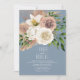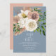 Invite a sus huéspedes con esta impresionante y polvorienta invitación a una boda floral de boho azul, con un cautivador arreglo de rosas de marfil, rosa y color rosa negro, y exuberante vegetación. El suave fondo azul polvoriento y el romántico diseño floral hacen de esta invitación perfecta para bodas rústicos, boho o de la temática del jardín. Personalizar con facilidad con los detalles de su boda para un toque realmente personalizado.