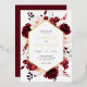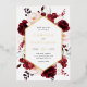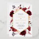 Elegante Invitación a la Boda Floral Borgoña con letras de Relieve metalizado dorado. Tienes la opción de Relieve metalizado dorado Silver, Gold o Rosa. Todas las letras son editables - haga clic en el botón "Personalizar más adelante" para editarlas. Artículos coincidentes en el diseño del fiesta Cava de nuestra tienda