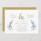 Invitaciones de boda impresas por personalizado a precios asequibles y personalizadas con los detalles del evento. Este elegante diseño cuenta con una mezcla de Relieve metalizado dorado y delicados florales de color azul y verde sobre un fondo blanco. Utilice las herramientas de diseño para personalizar del texto, editar los tipos de letra y los colores o añadir sus propias fotos para crear una elegante y elegante invitación a la boda.