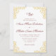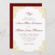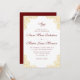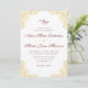 Un diseño vintage de ilustraciones florales de oro falso adornando los bordes y adorable guión rojo y texto personalizado en el medio. Esta plantilla para su elegante tema de boda vintage se puede personalizar.