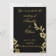 Trae elegancia atemporal a tu gran día con esta invitación de boda floral de oro y negro. Con delicados florales dorados de líneas botánicas sobre un fondo negro profundo, este diseño combina el romanticismo y la sofisticación. Personalice fácilmente sus nombres, fecha de boda, lugar y detalles especiales utilizando el editor de Zazzle. Perfecto para noches románticas, bodas formales, temas rústicos de lujo o celebraciones en el jardín de modas. Par con RSVP coincidente, Guardar la fecha y tarjetas de agradecimiento para completar el juego de artículos de escritorio del boda.