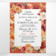 Todo esto en una invitación a la boda triplicada incluye flores pintadas con acuarela en los colores otoñales perfectos de naranja, rubor, amarillo, rojo y rosa con acentos de Relieve metalizado dorado. Ideal para bodas clásicas, contemporáneas y vintage en otoño. Añade los detalles de tu boda, enlace al sitio web del código QR, RSVP y tu foto. Descubra la selección de invitaciones coordinadas, decoración, carteles y más.