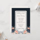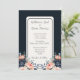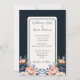 Se trata de una elegante invitación a bodas floridas de color azul marino y azul celeste con rosas azules y rosas rosas rosas, flores acuáticas sobre un diseño de fondo de color claro y rubio. Es perfecto para una romántica celebración boda.