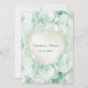Agradable y exuberante profusión de rosas de Mint Green diseñados en invitaciones de boda formal personalizado. Este diseño floral tiene un elegante cartel marfileño blanco en la parte delantera de la tarjeta para enmarcar sus nombres y fecha boda. El diseño está disponible en varios colores. Estas invitaciones de boda le darán un toque único a su tema boda. Todo el texto en la parte delantera y posterior de la invitación está listo para que usted pueda personalizar con su información.
