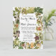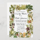 Las bayas y las flores de la naturaleza dan un toque orgánico a estas invitaciones. Un ambiente de bosque natural con tonos ruidosos y violetas
