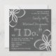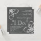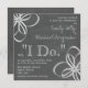 Una invitación de boda moderna con flores blancas en la parte superior izquierda y abajo a la derecha sobre un fondo inspirado en el pizarrón. Personalizar el texto blanco con detalles de su ocasión.